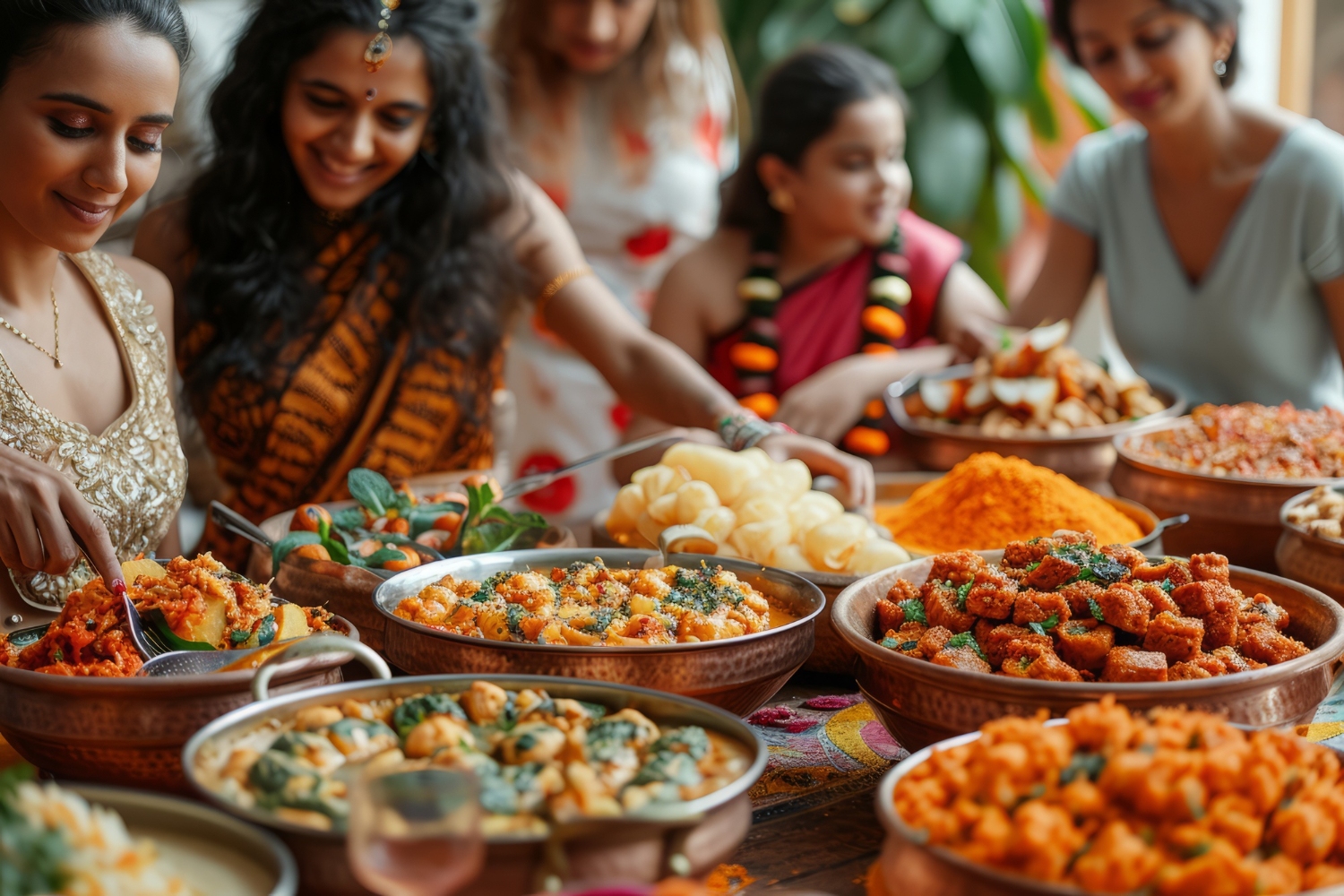 Interactive food stations, including Chaat counters, BBQ grills, and dessert bars, for an engaging experience.